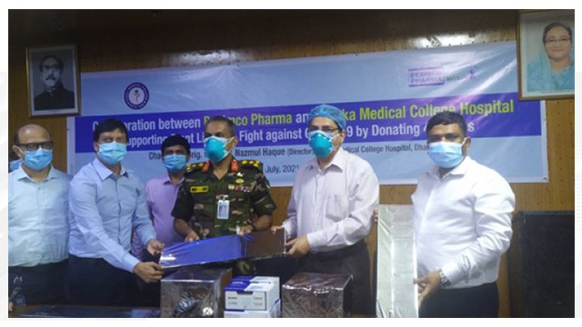 BEXIMCO Pharmaceuticals Ltd. handed over 400 fans and 30 boxes of face masks to authorities of Dhaka Medical College